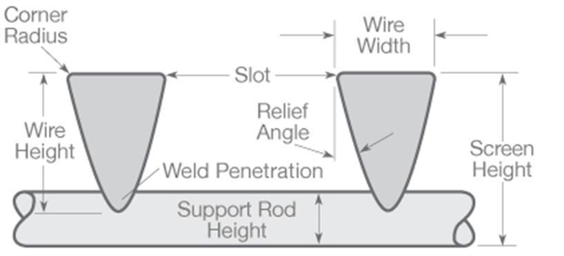 Each joint point of these wire is fusion welded, the V or wedge shaped profile wire wraps around the support rods over the full length of the screen creating a continuous slot opening.
